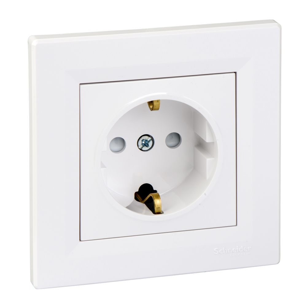 Asfora - single socket outlet with side earth - 16A shutters white 5 pack