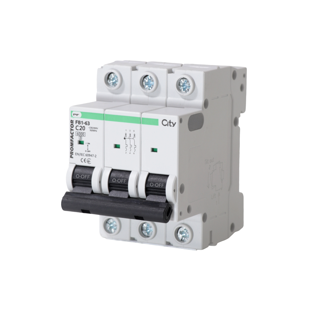 Автоматичний вимикач FB1-63 3P C 20A 6kA CITY - FB1CI3020 - Модульні автоматичні вимикачі
