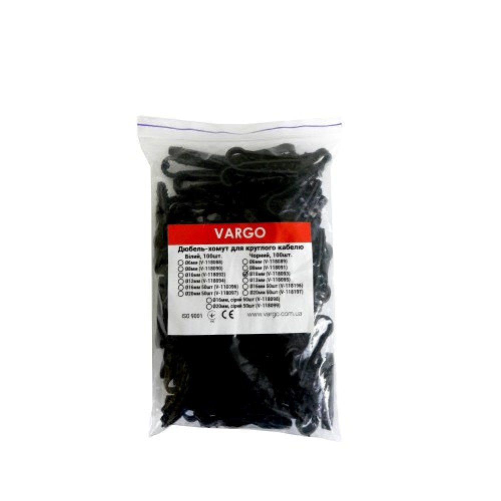 Дюбель-хомут VARGO (V-118109) – это идеальное решение для организации и надежного закрепления плоских кабелей в любом помещении. Эти черные хомуты от VARGO созданы для обеспечения надежности и организованности вашей кабельной системы.