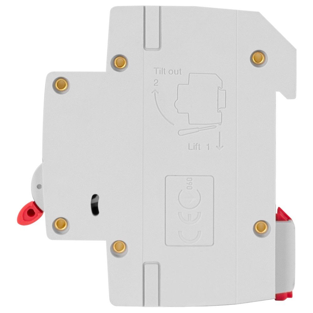 Засувка на DIN-рейку має два фіксованних положення, що значно полегшує монтаж та демонтаж вимикача.