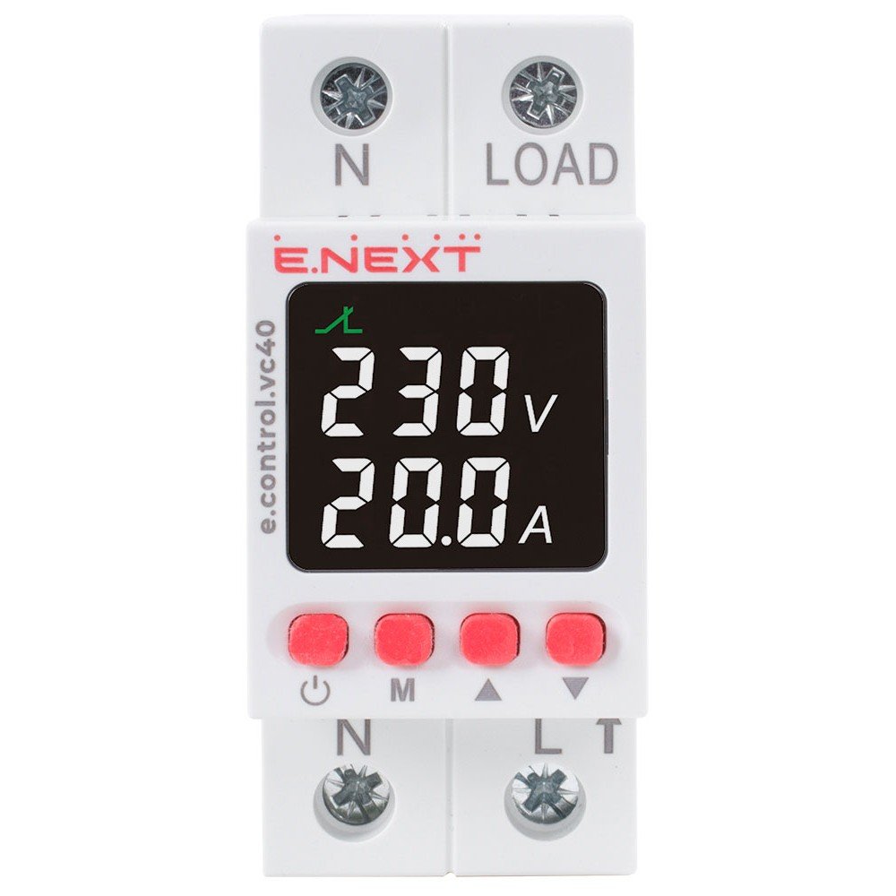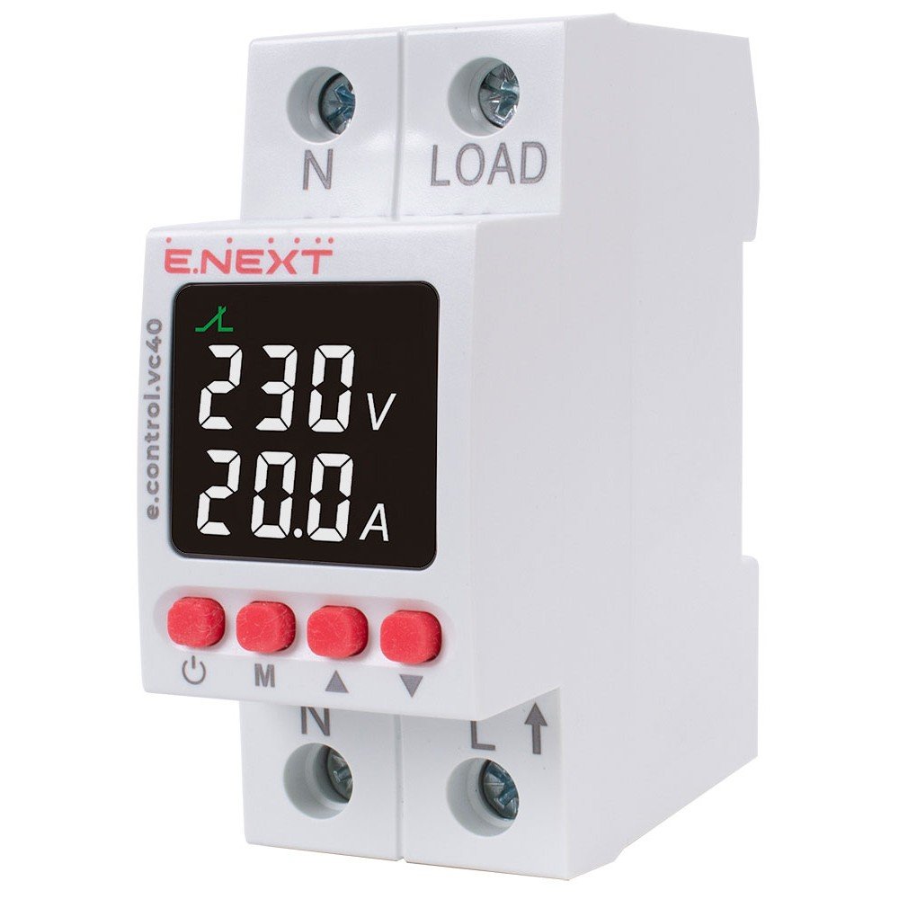 Реле контролю напруги та струму e.control.vc, призначене для безперервного контролю величин напруги та струму в однофазних колах та захисту обладнання від недопустимих коливань напруги і перевантаження.