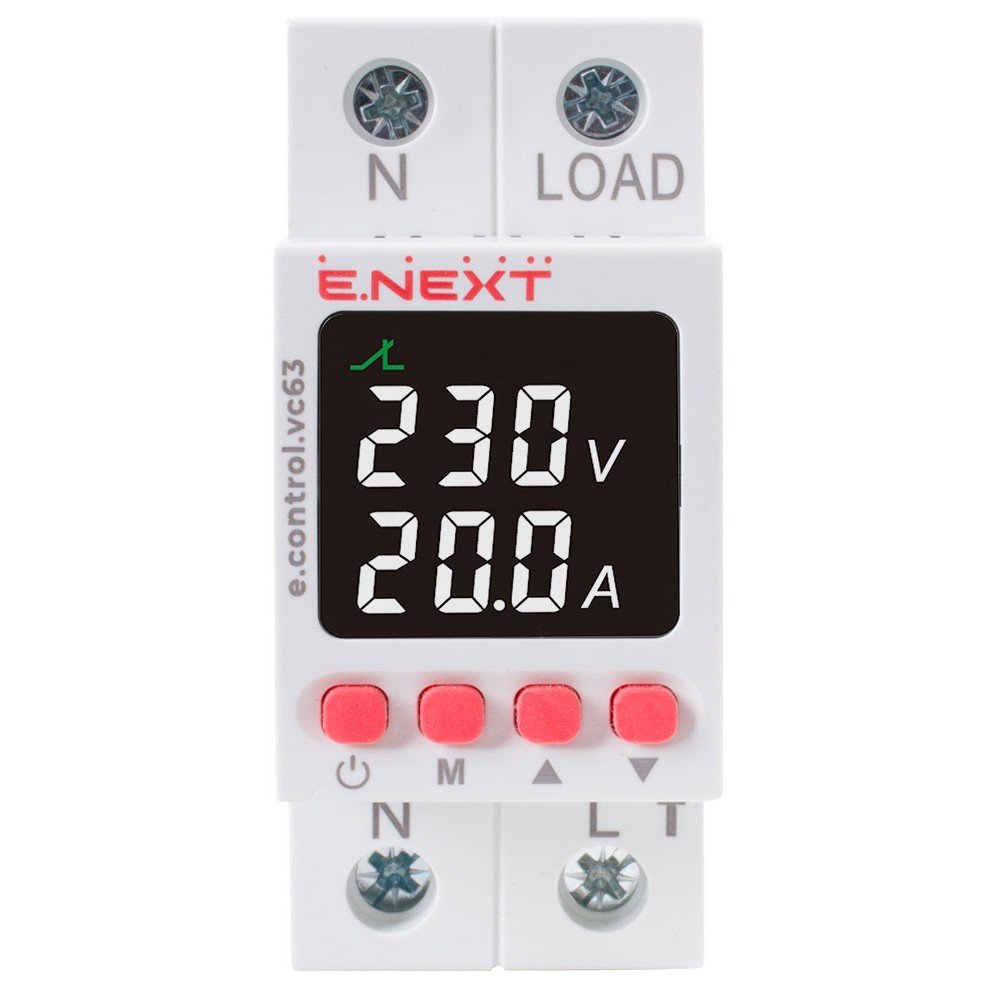 Реле контролю напруги та струму однофазне 63А з індикацією e.control.vc63