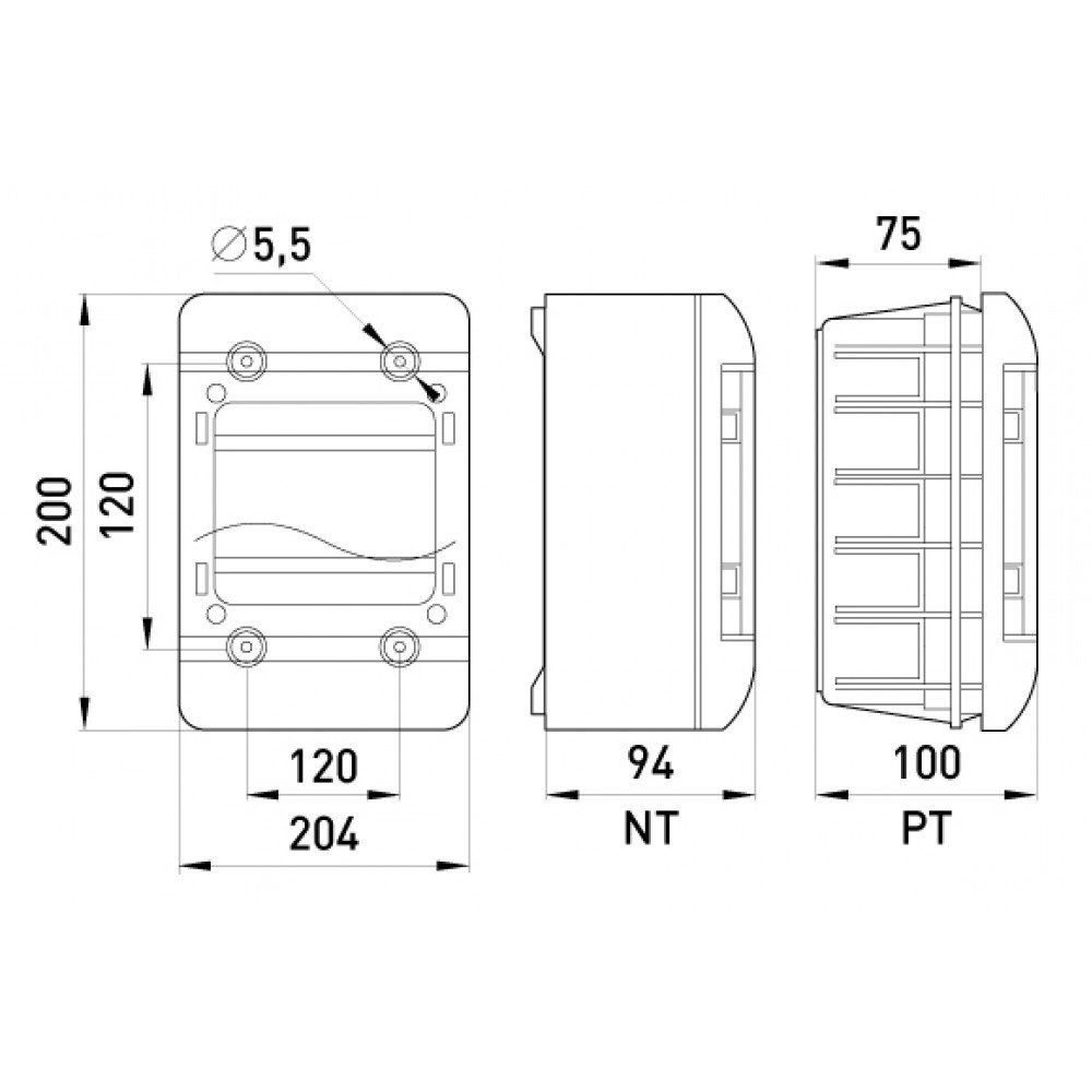 Корпус пластиковий, що вбудовується (PT) 9-модульний, однорядний, IP 30 використовується для встановлення модульних автоматичних вимикачів.