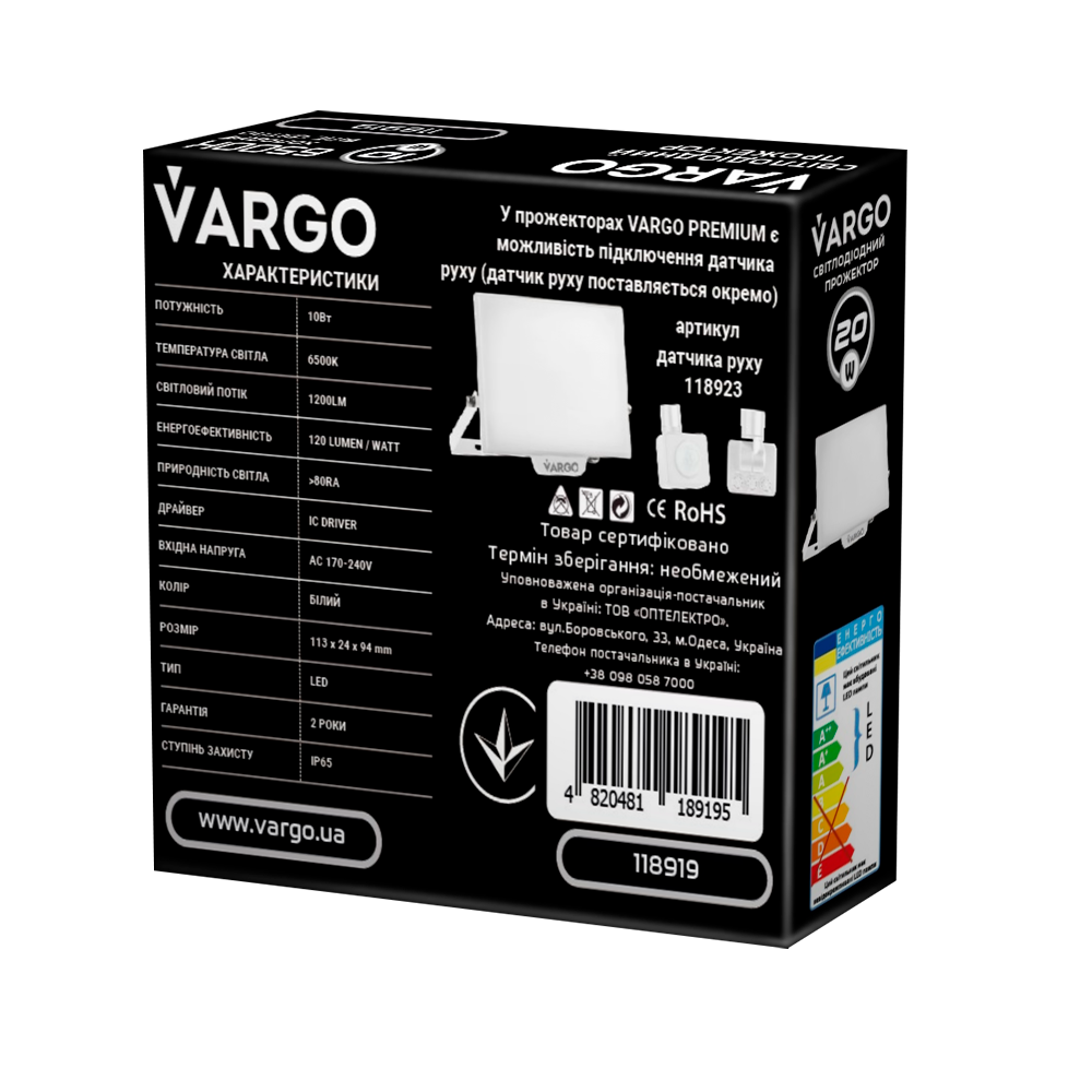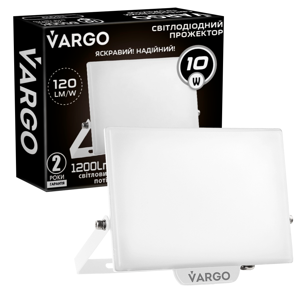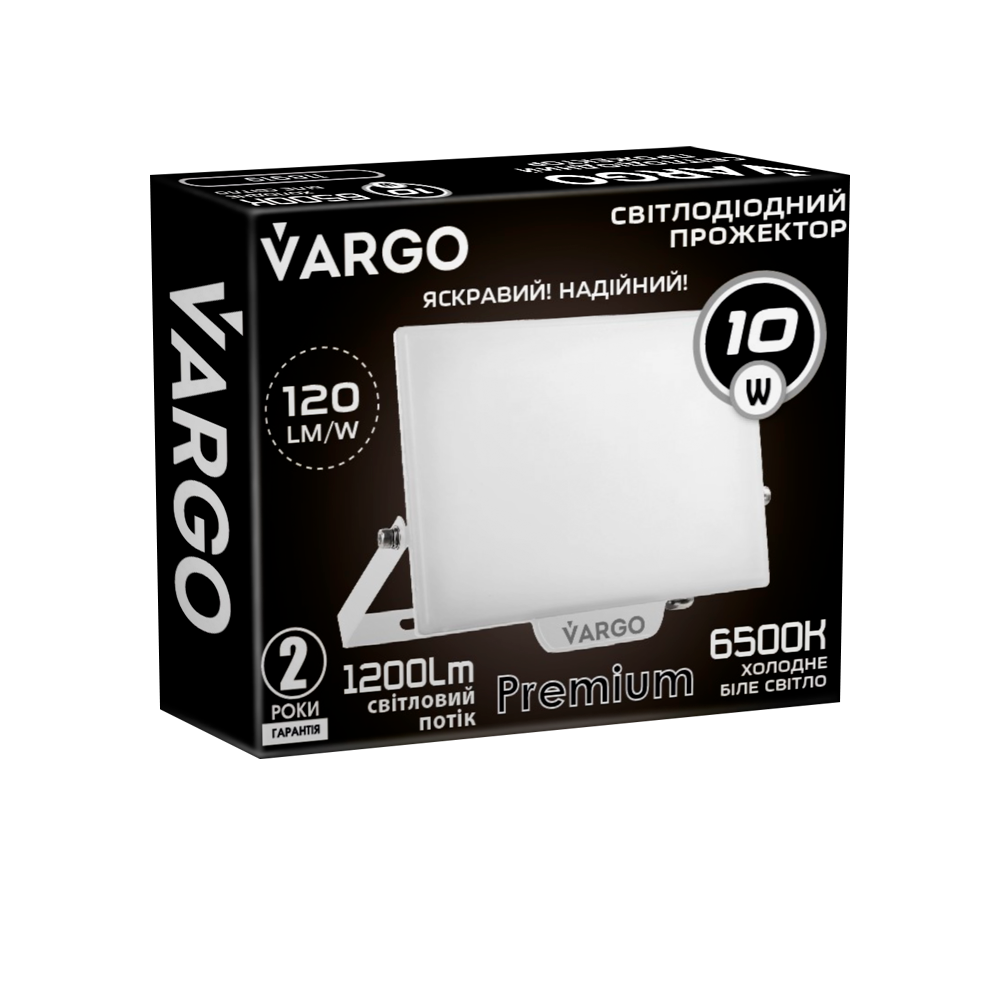 LED Прожектор VARGO Premium 10W, 1200lm, 120lm/w, IC Driver, 2 года гарантия, белый