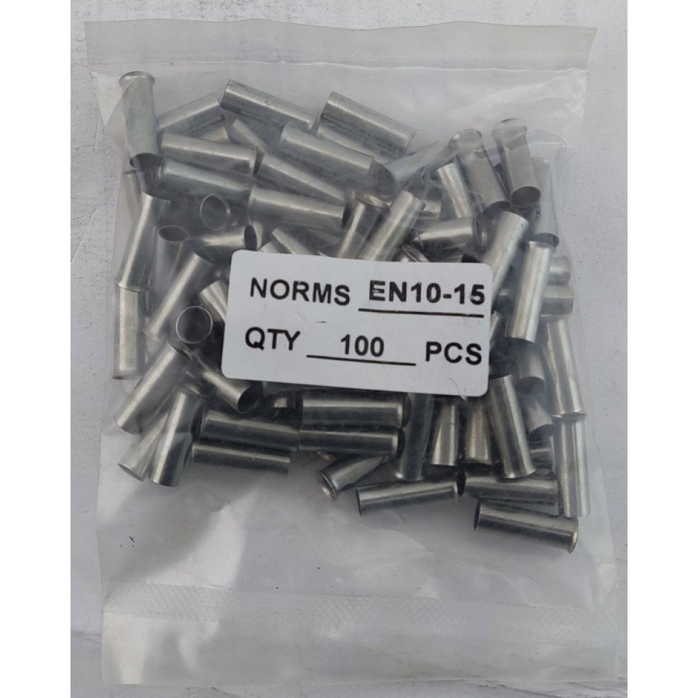 Наконечник гільза без ізоляції EN10-15 - торгової марки TechnoSystems призначений для з'єднання або окінцювання проводів і кабелю з мідними або алюмінієвими жилами в електричних ланцюгах змінного та постійного струму.