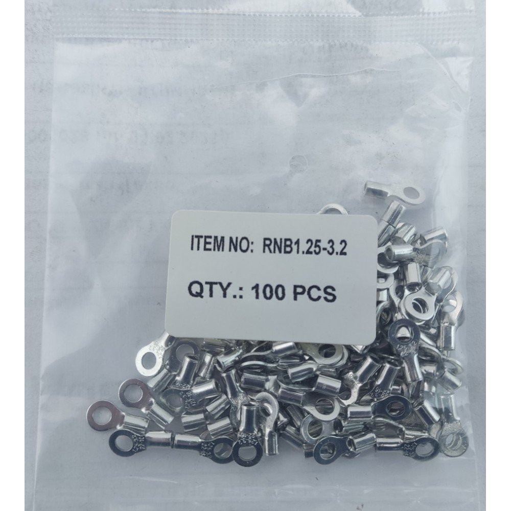 Наконечник кільцевий без ізоляції RNB 1,25-3 (0,5-1,5/3) - призначений для окінцювання мідних проводів та кабелів; приєднання їх до пристроїв, що мають контактні групи з болтами (гвинтами).