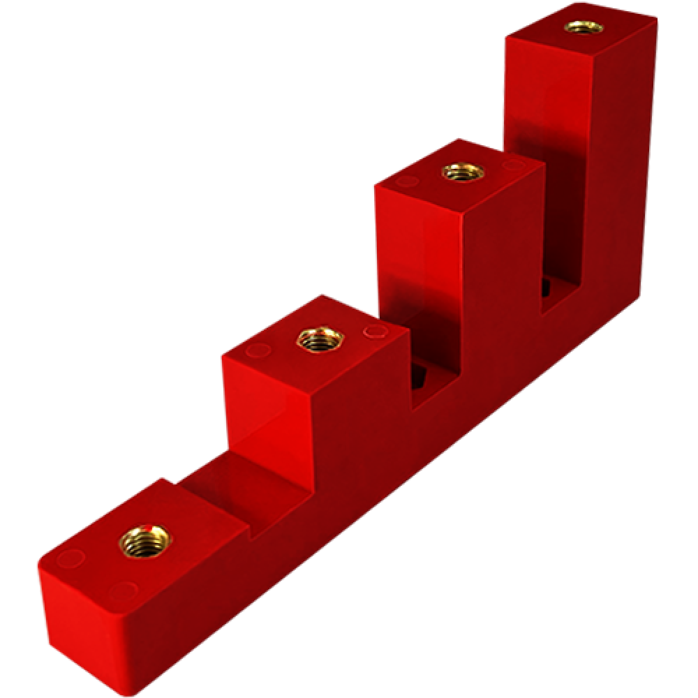 Ступінчаті ізолятори SJ від ТМ "PF" застосовуються для кріплення струмопровідних шин в середині корпусу або