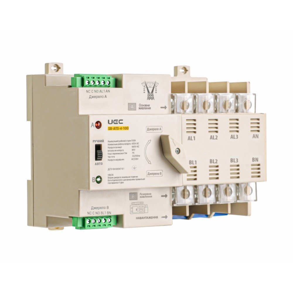Автоматичний перемикач призначений для автоматичного або ручного перемикання на резервне джерело живлення при відключенні основного джерела живлення.