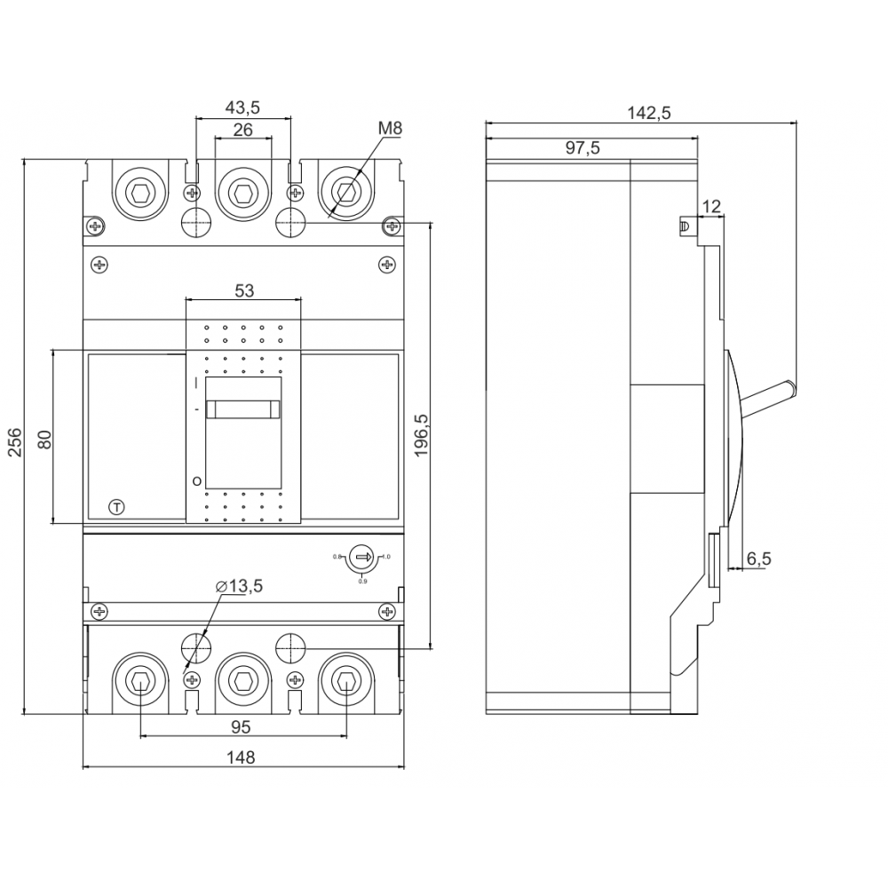 - можливість регулювання номінального струму (0.8/0.9/1.0*In);