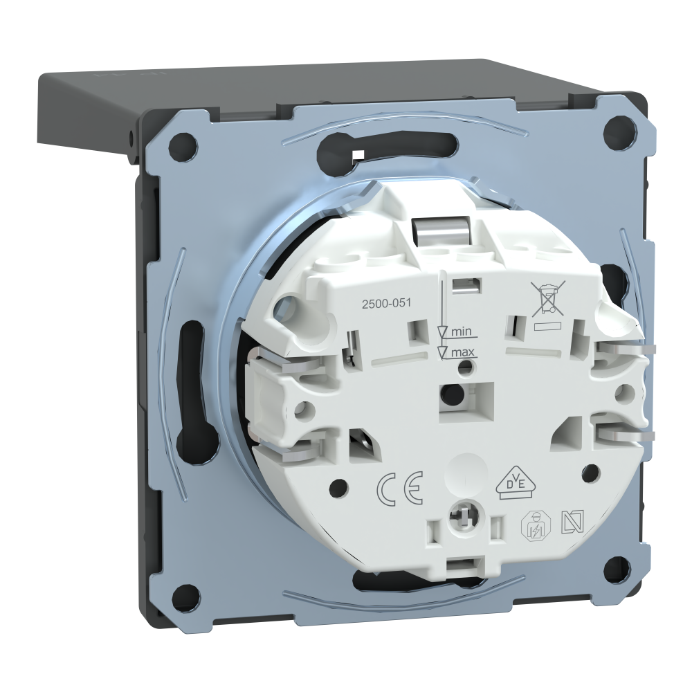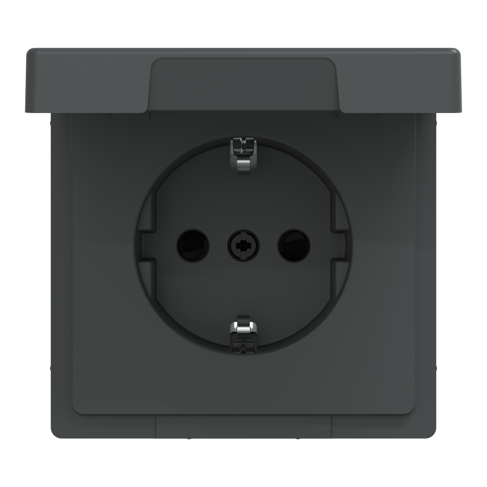 Розетка Schneider Electric Merten System Design MTN2314-6034 кольору антрацит з заземленням. Клеми підключення розетки - безгвинтові. Розетка виготовлена по стандрту Шуко. Номінальний струм 16 А. Тип монтажу - прихований. Тип кріплення - гвинти та монтажні лапки. Розетка виготовлена з PC (полікарбонату). Розетка належить до групи System Design. Більше того, вона відповідає стандарту DIN 49440. Її ширина 71 мм, висота 45 мм і довжина 71 мм. Конфігурація полюсів розетки 2P + E зі шторками, що захищає дітей від можливого ураження електричним струмом. Обробка поверхні лаком забезпечує серйозний захист. Ступінь захисту IP44.