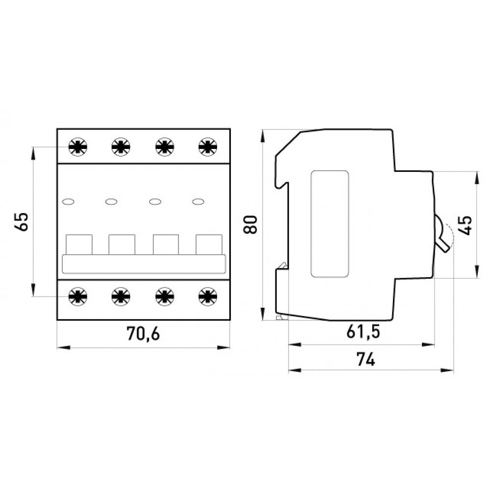 Засувка на DIN-рейку має два фіксованних положення, що значно полегшує монтаж та демонтаж вимикача.
