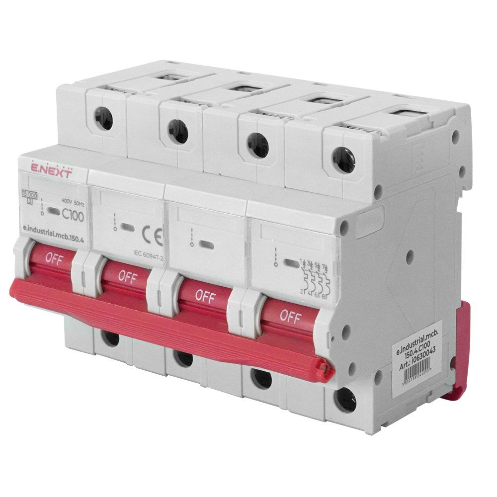 Модульний автоматичний вимикач e.industrial.mcb.150.4.C100, 4р, 100A, C, 15кА