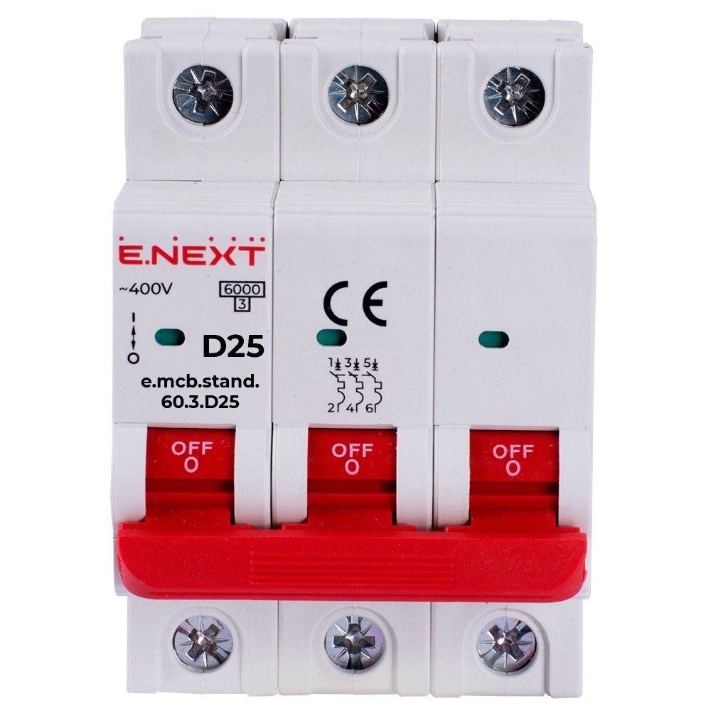Модульний автоматичний вимикач e.mcb.stand.60.3.D25, 3р, 25А, D, 6 кА