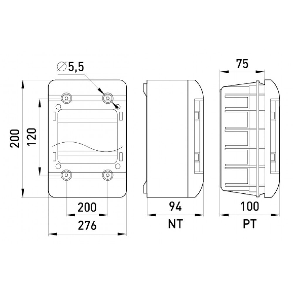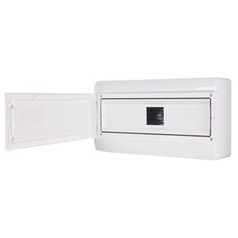Корпус пластиковий, навісний (NT) 13-модульний, однорядний, IP 40, з непрозорими дверцятами використовується для встановлення модульних автоматичних вимикачів.