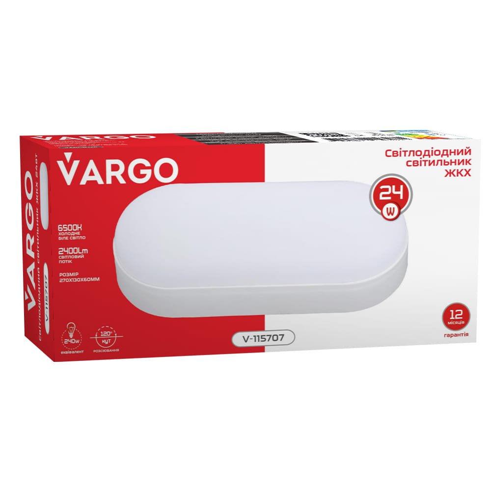 LED свiтильник VARGO ЖКХ 24W 5000K 2400lm овал IP54 AC165-265V Розмір: 270х130х60мм (V-115707)