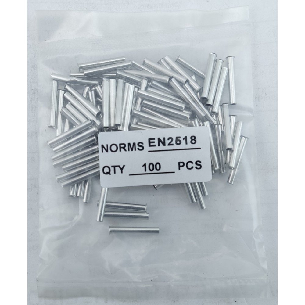 Наконечник гільза без ізоляції EN2518 - торгової марки TechnoSystems призначений для з'єднання або окінцювання проводів і кабелю з мідними або алюмінієвими жилами в електричних ланцюгах змінного та постійного струму.