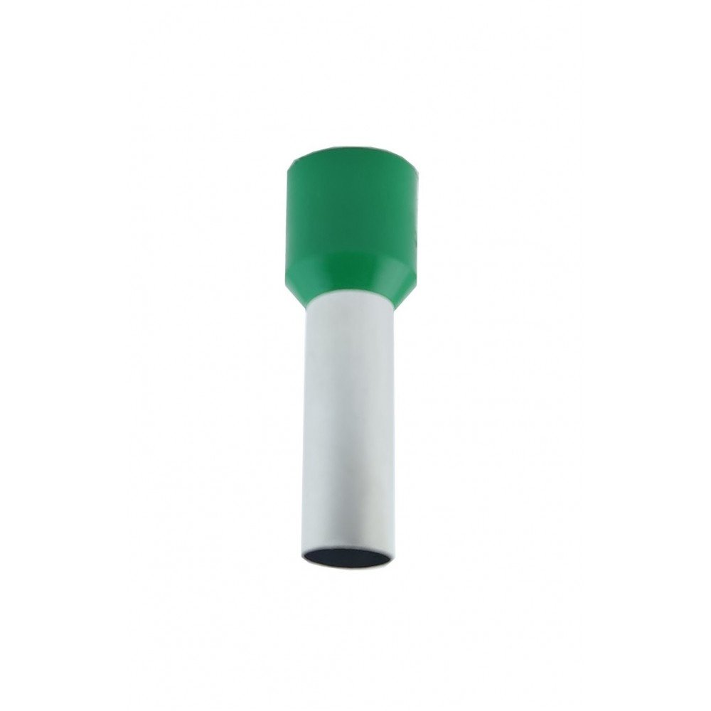 Наконечник гільза Е16-18 16мм2 зелений - призначений для окінцювання проводів і підключення їх до контактних затискачів різного електроустаткування наприклад (клемних блоків, автоматичних вимикачів, набірних затискачів, розеток тощо). Даний вид наконечника призначений для окінцювання багатодротяних гнучких проводів. З'єднання наконечника відбувається наступним чином: зачищений кінець багатодротяного провідника заводиться всередину порожнистої кінцевої труби і вже потім опресовується разом з трубкою за допомогою спеціального інструменту, утворюючи єдину конструкцію, що надійно фіксує пучок багатодротяної жили.