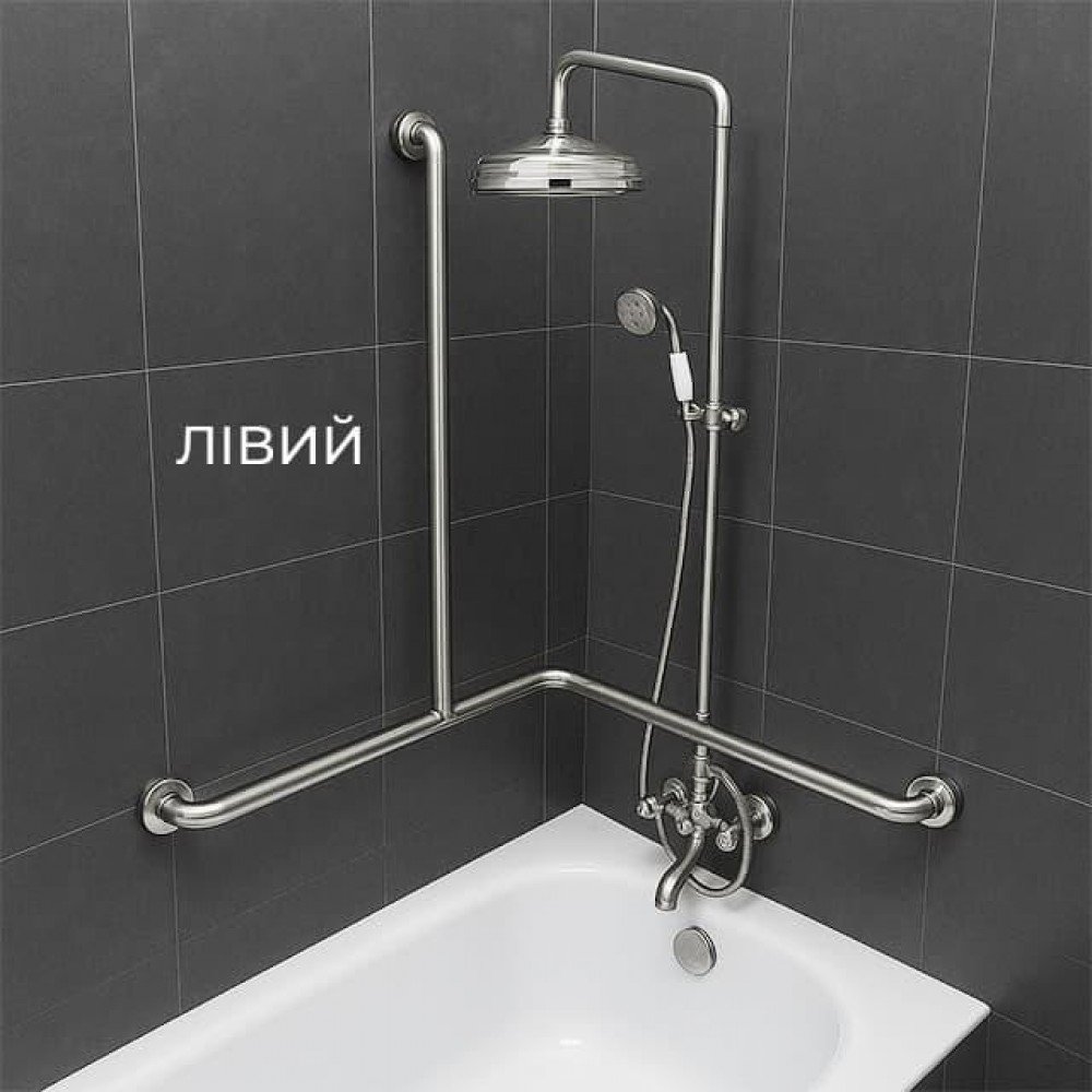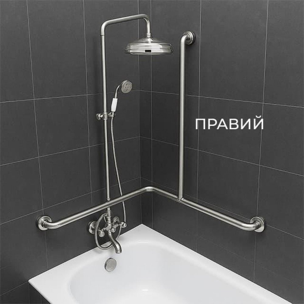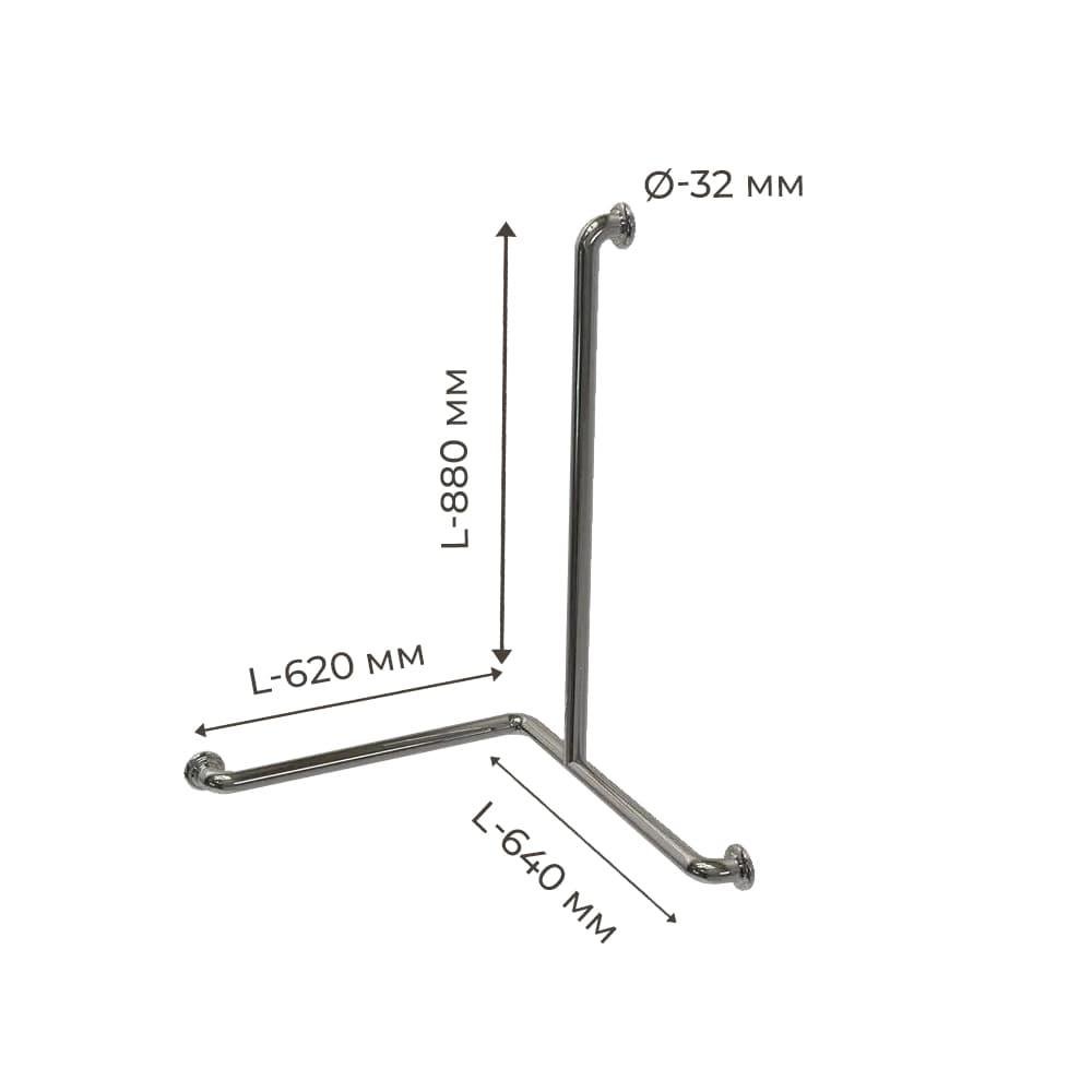 Поручень для людей с инвалидностью (МГН) для ванны трехопорный INVO, левый и правый, размер 620х640х880 мм, D трубы - 32 мм