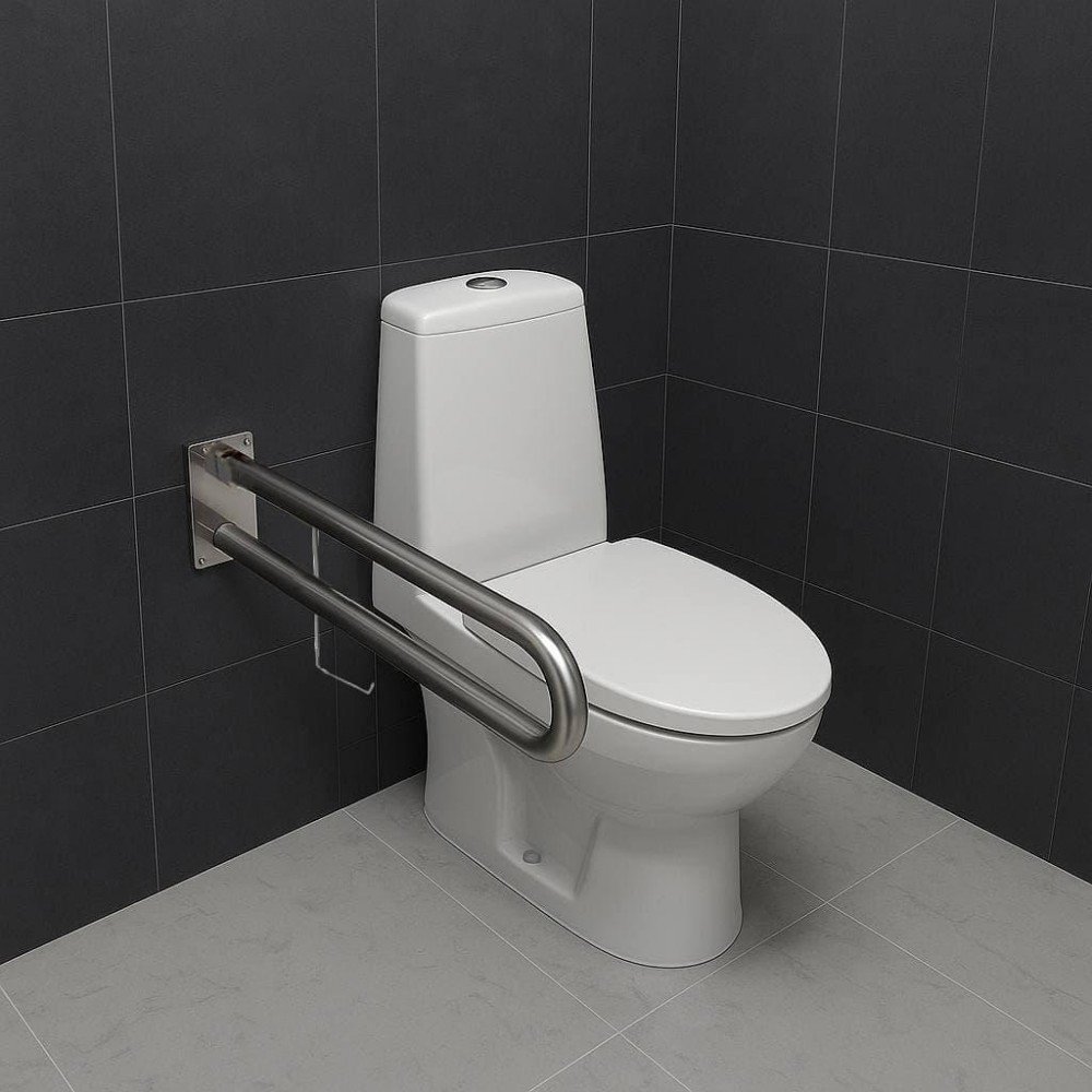 Поручень для людей с инвалидностью (МГН) двойной INVO откидной с креплением на стену с бумагодержателем