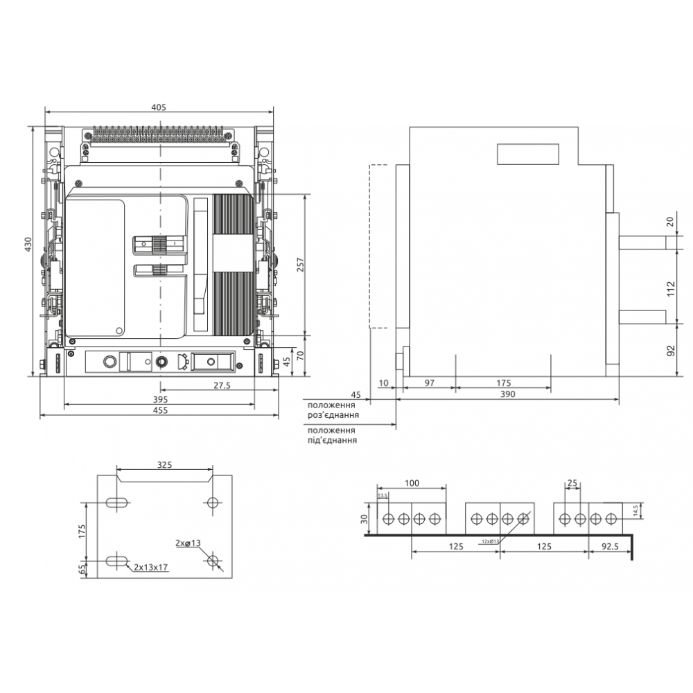 Можливе встановлення розчіплювача мінімальної напруги на замовлення.