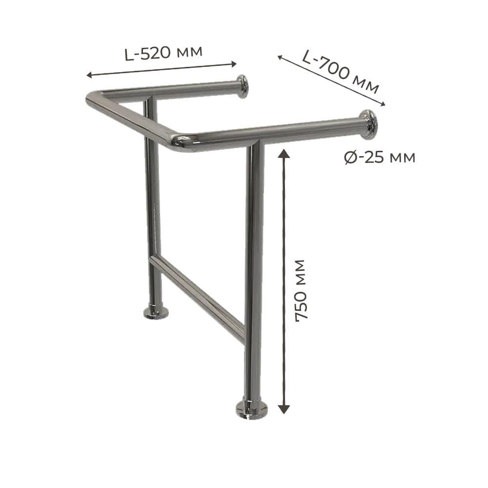 Поручень для людей с инвалидностью (МГН) для раковины напольно-настенный INVO с защитой слива, размер 700х750 мм, D трубы - 25 мм