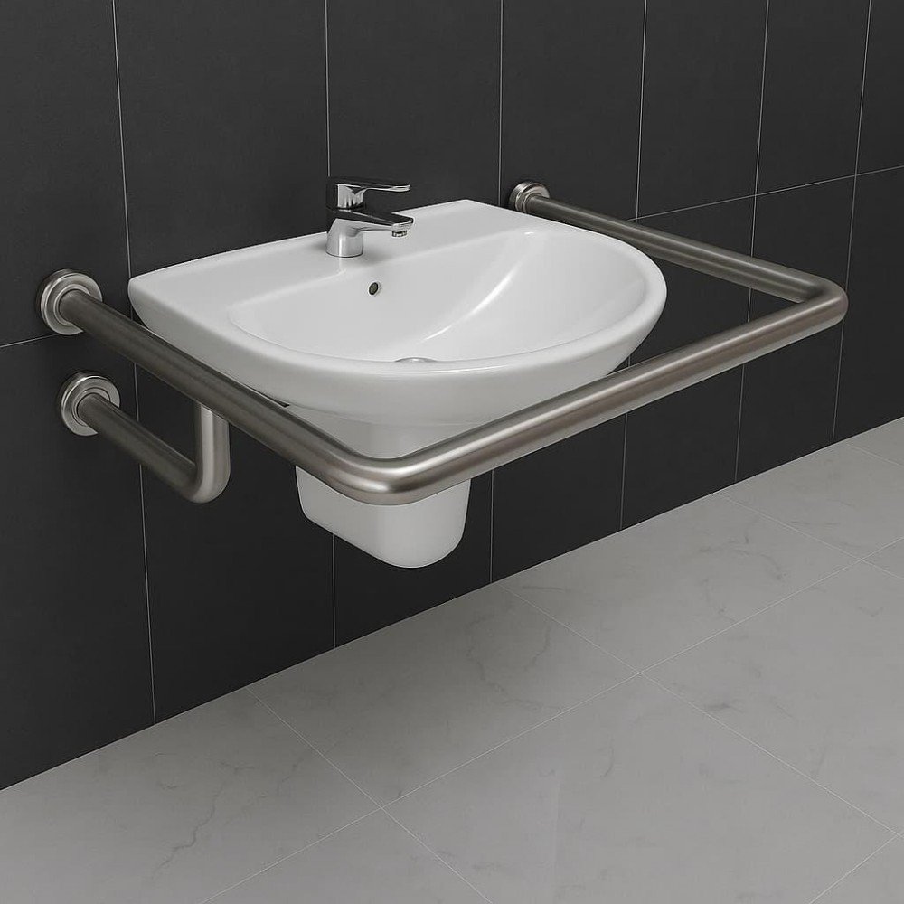 Поручень для людей с инвалидностью (МГН) на стену для раковины INVO верхний из нержавеющей стали, размер 700х519 мм, D трубы - 42 мм