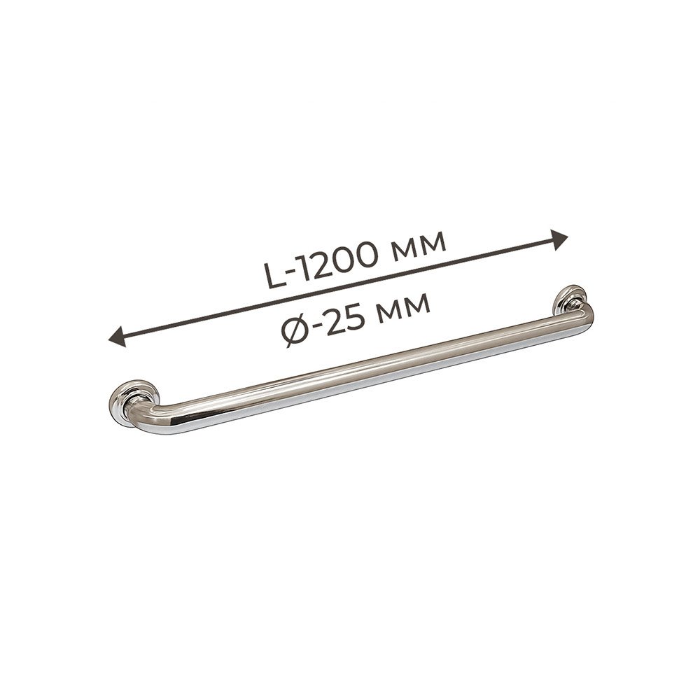 Поручень для людей с инвалидностью (МГН) прямой настенный INVO из нержавеющей стали, L- 1200 мм, D трубы - 25