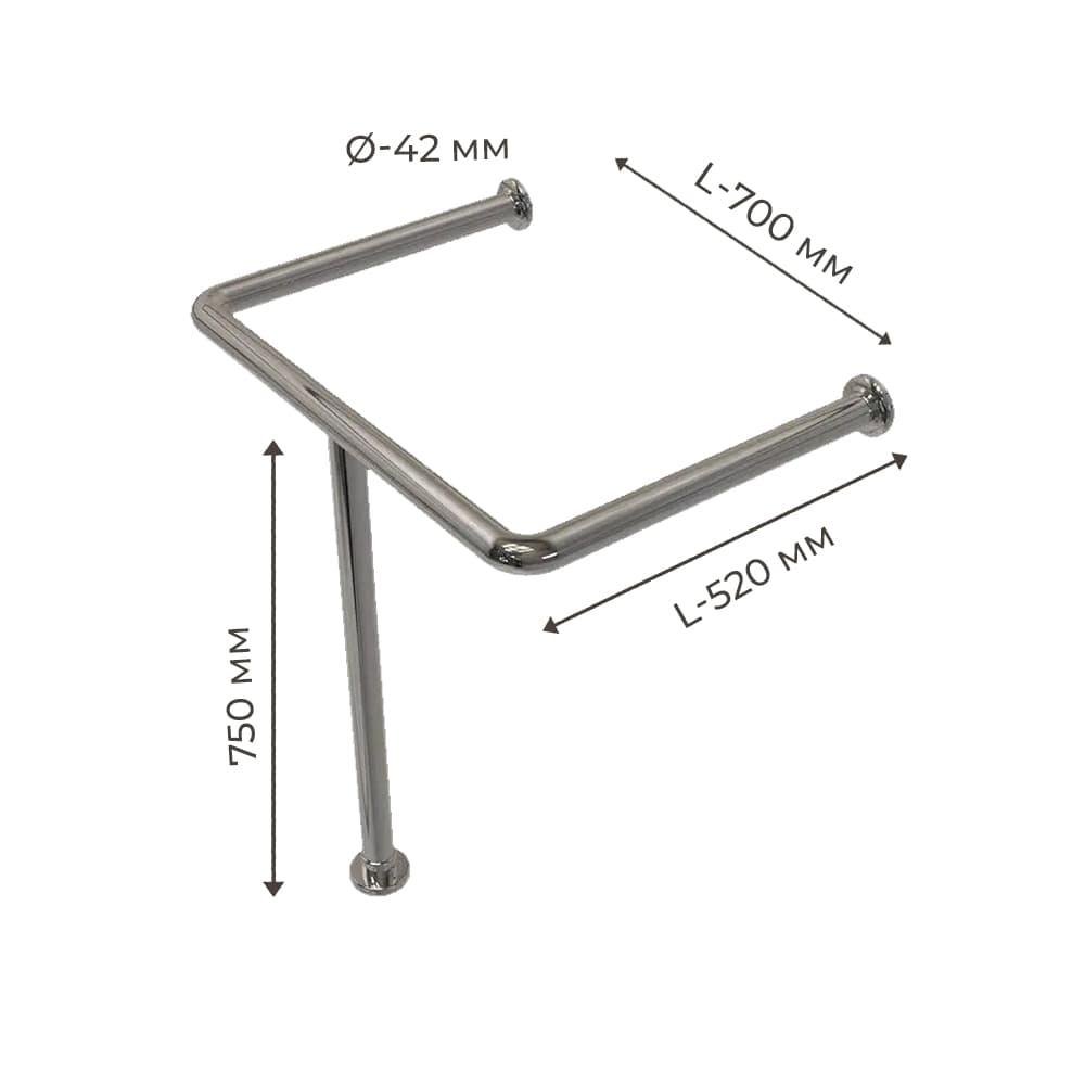 Поручень для людей с инвалидностью (МГН) для раковины напольно-настенный INVO из нержавеющей стали, размер 700х750 мм, D трубы - 42 мм