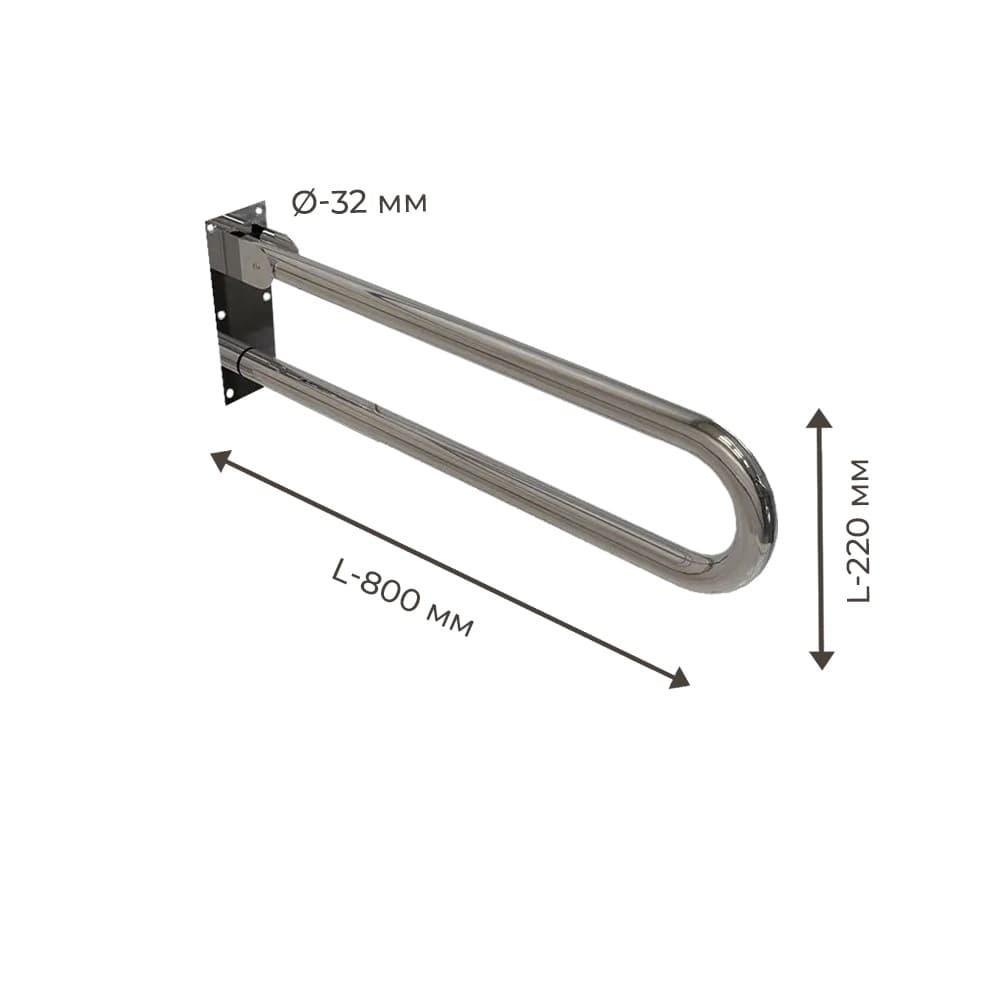 Поручень для людей с инвалидностью (МГН) двойной INVO откидной с креплением на стену, размер 800х220 мм, D трубы - 32 мм