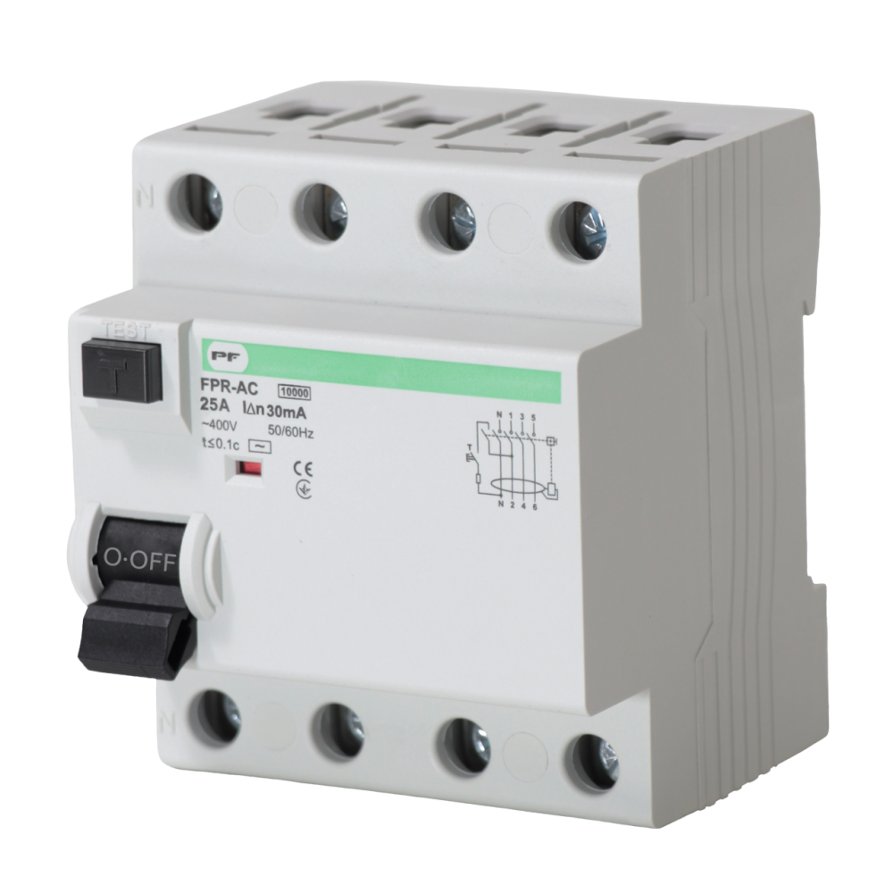 Реле захисного відключення FPR-AC 25А/0,03A 4P АС 10kA