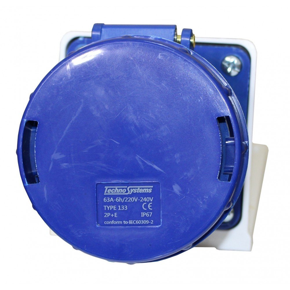 Розетка 133 стаціонарна 2Р+РЕ 63А 220В IP67 TNSy - застосовується зовні чи всередині різних будівель. Наприклад для забезпечення електрикою кіосків, побутівок, для використання в будинках відпочинку та готелях, а також для підключення електро-інструментів, верстатів та іншого промислового обладнання.
