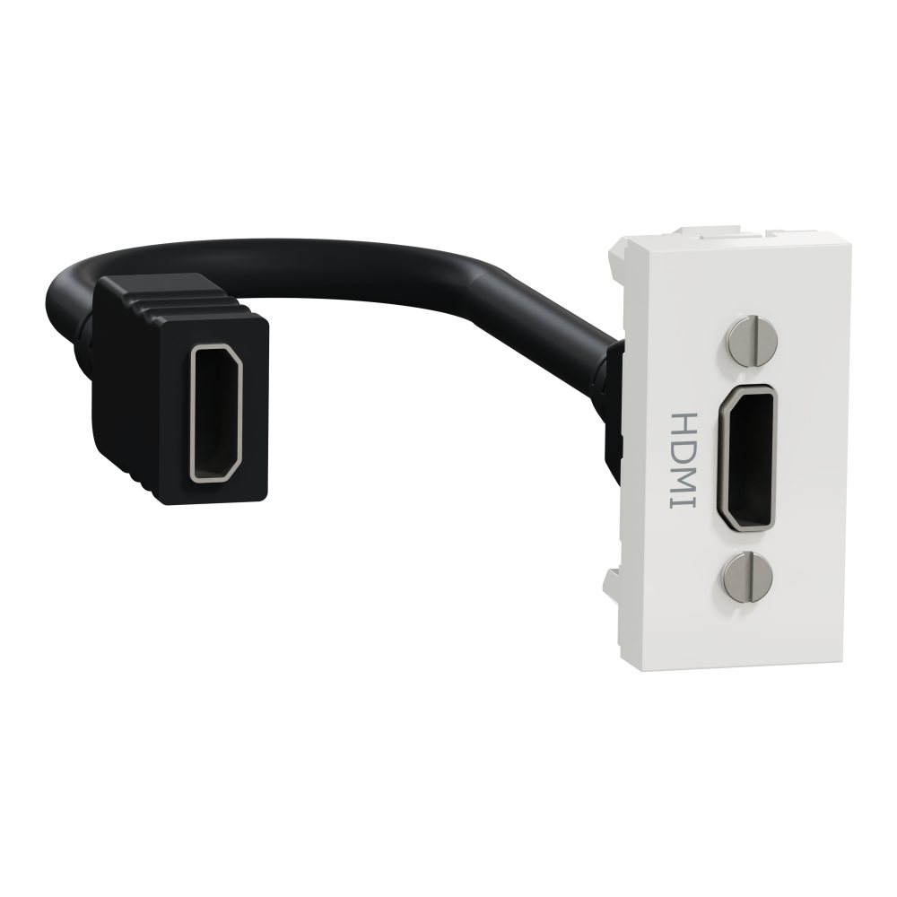 Розетка HDMI Schneider Electric New Unica NU343018 - це механізм білого кольору. Цей продукт продається набором по 10 штук. Він має ширину 22,5 мм, висоту 45 мм, глибину 220 мм і вагу 0,036 кг. Тип кріплення - затискачі. HDMI розєм виготовлено з термопластику ABS-UV-стабілізованого, що робить його максимально стійким. Більше того, цей пристрій кваліфікується як екологічний продукт преміум-класу з мінімальним використанням небезпечних речовин. Крім того, він досягає рівня захисту IK02, що захищає від ударів. Більше того, його директиви 2014/30/EU – електромагнітна сумісність. Крім того, він екологічно чистий, стійкий до ультрафіолету, ацетону, спирту, аміаку, відбілювача, рідкого мила, масла, бензину, рідини для миття вікон. Цей HDMI роз’єм також не містить SVHC (особливо небезпечні речовини). Більше того, він цілком відповідає стандартам EN 61000-6-1, EN 61000-6-3, EN 62680-2-1. Крім того, він не містить галогенів. Поверхня глянцева, що забезпечує яскраве, навіть привабливе покриття. New Unica включає в себе різномаїття нових дизайнів, кольорів і матеріалів. Користувачі отримують задоволення від привабливого дизайну, який відповідає їх стилю, та інноваційних продуктів. New Unica має розумні функції, є гнучкою, зрозумілою та швидко встановлюється.
