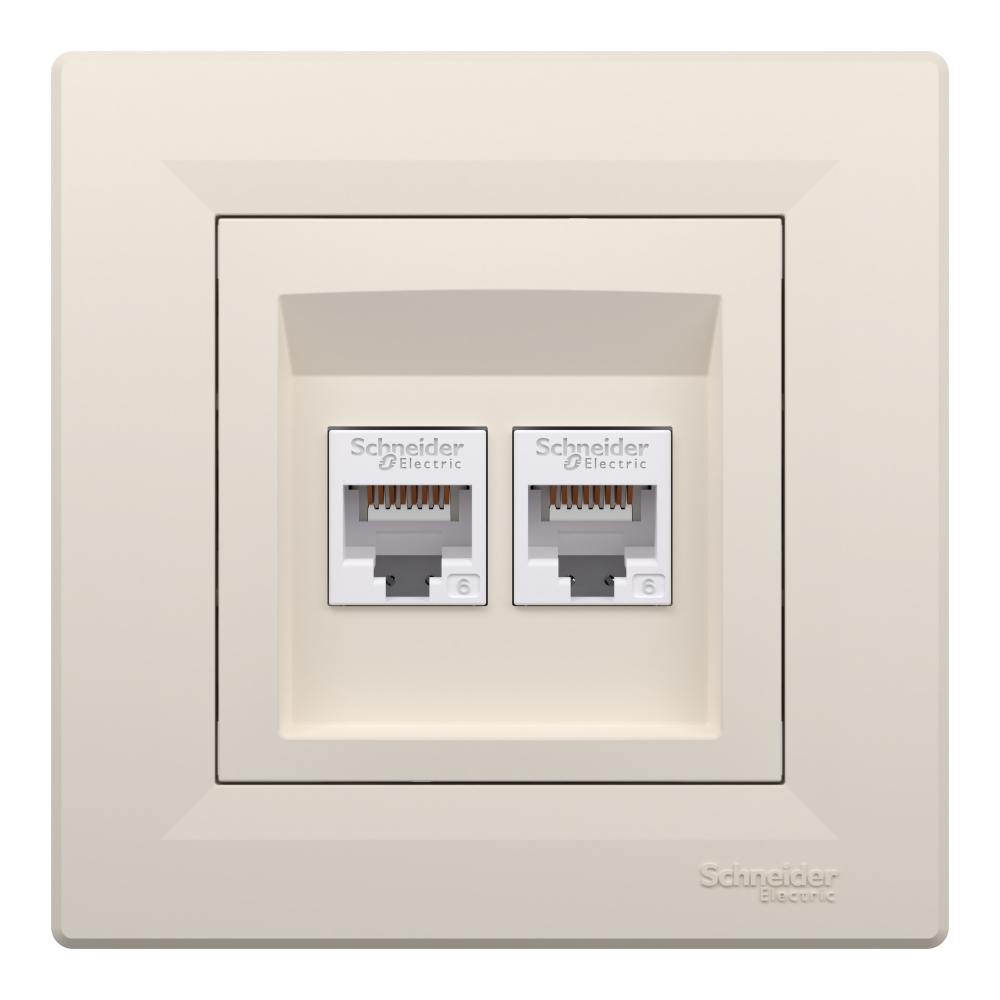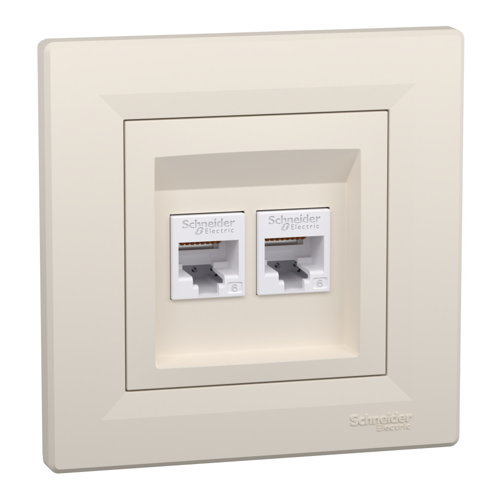 РОЗЕТКА КОМПЮТЕРНА RJ45 UTP КАТ.6 ПОДВІЙНА КРЕМ ASFORA