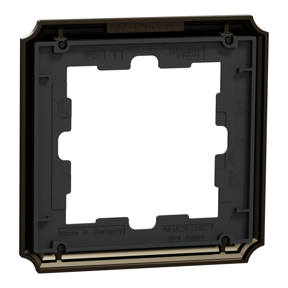 Рамка Merten System Design D-Antique MTN4010-4752, 1-постова, у кольорі мокко. Її ширина 90 мм, висота 90 мм, глибина 12 мм. Ступінь захисту IP20. Виготовлена зі сплаву металів Zamak. Рамка не містить SVHC (особливо небезпечних речовин). Рамка не містить ртуті та галогенів, що безпечно для вас та навколишнього середовища. Merten System Design — це серія сучасних електроустановчих виробів, яка має широкий асортимент механізмів (вимикачі, розетки, димери, USB розетки та розетки RJ45 і тд), яка втілює аристократичну елегантність та розкішну ексклюзивність.