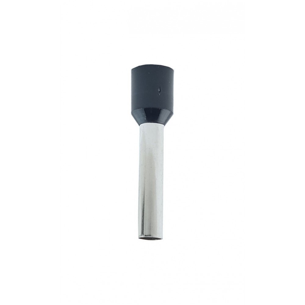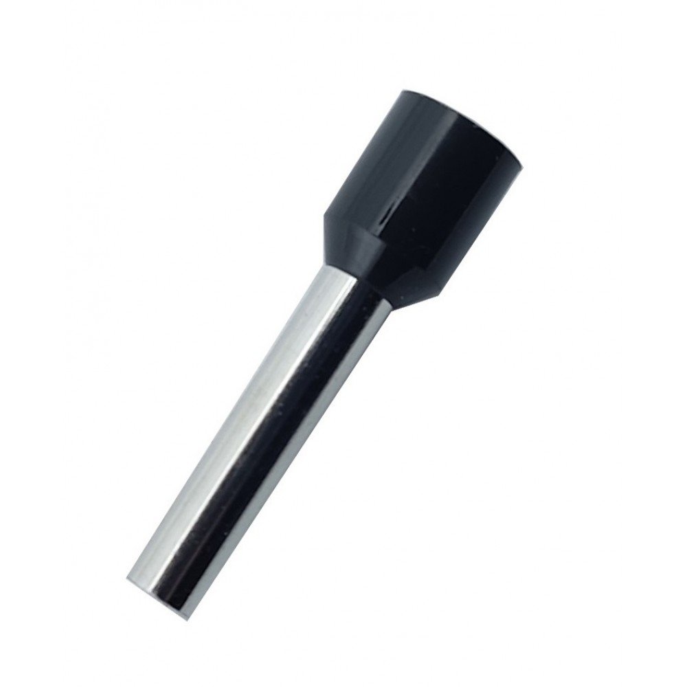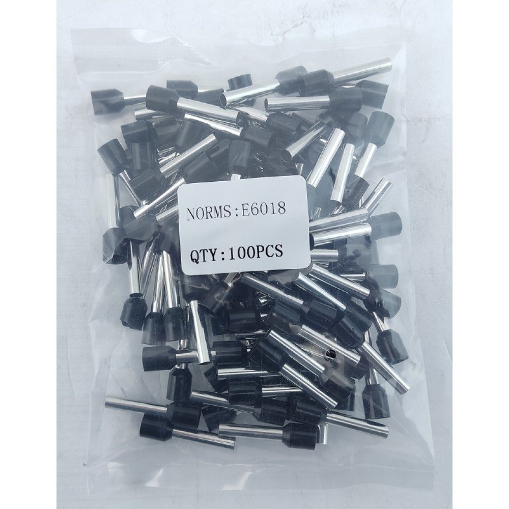 Наконечник гільза Е6018 6мм2 чорний - призначений для окінцювання проводів і підключення їх до контактних затискачів різного електроустаткування наприклад (клемних блоків, автоматичних вимикачів, набірних затискачів, розеток тощо). Даний вид наконечника призначений для окінцювання багатодротяних гнучких проводів. З'єднання наконечника відбувається наступним чином: зачищений кінець багатодротяного провідника заводиться всередину порожнистої кінцевої труби і вже потім опресовується разом з трубкою за допомогою спеціального інструменту, утворюючи єдину конструкцію, що надійно фіксує пучок багатодротяної жили.