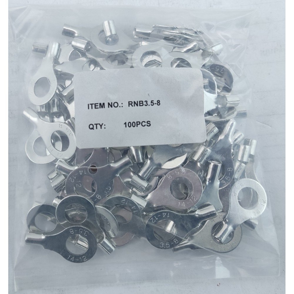 Наконечник кільцевий без ізоляції RNB 3,5-8 (2,5-4/8) - призначений для окінцювання мідних проводів та кабелів; приєднання їх до пристроїв, що мають контактні групи з болтами (гвинтами).
