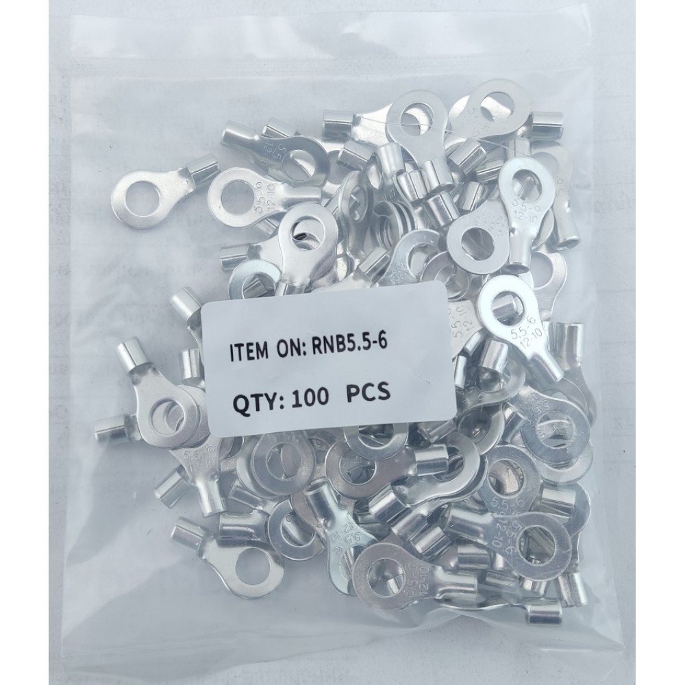 Наконечник кільцевий без ізоляції RNB 5,5-6 (4-6/6) - призначений для окінцювання мідних проводів та кабелів; приєднання їх до пристроїв, що мають контактні групи з болтами (гвинтами).