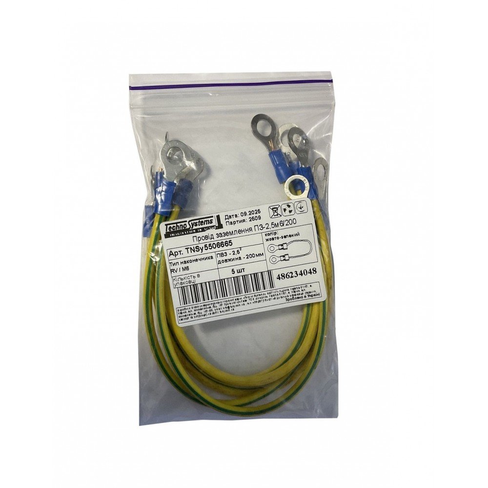 Провід заземлення ПЗ-2,5м6/200 (ПВ3-2,5мм2 Ж/З, L200мм, М6.) TNSy
