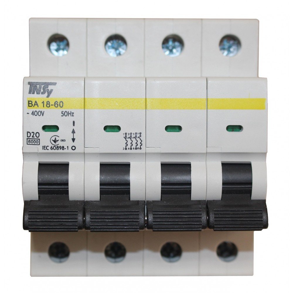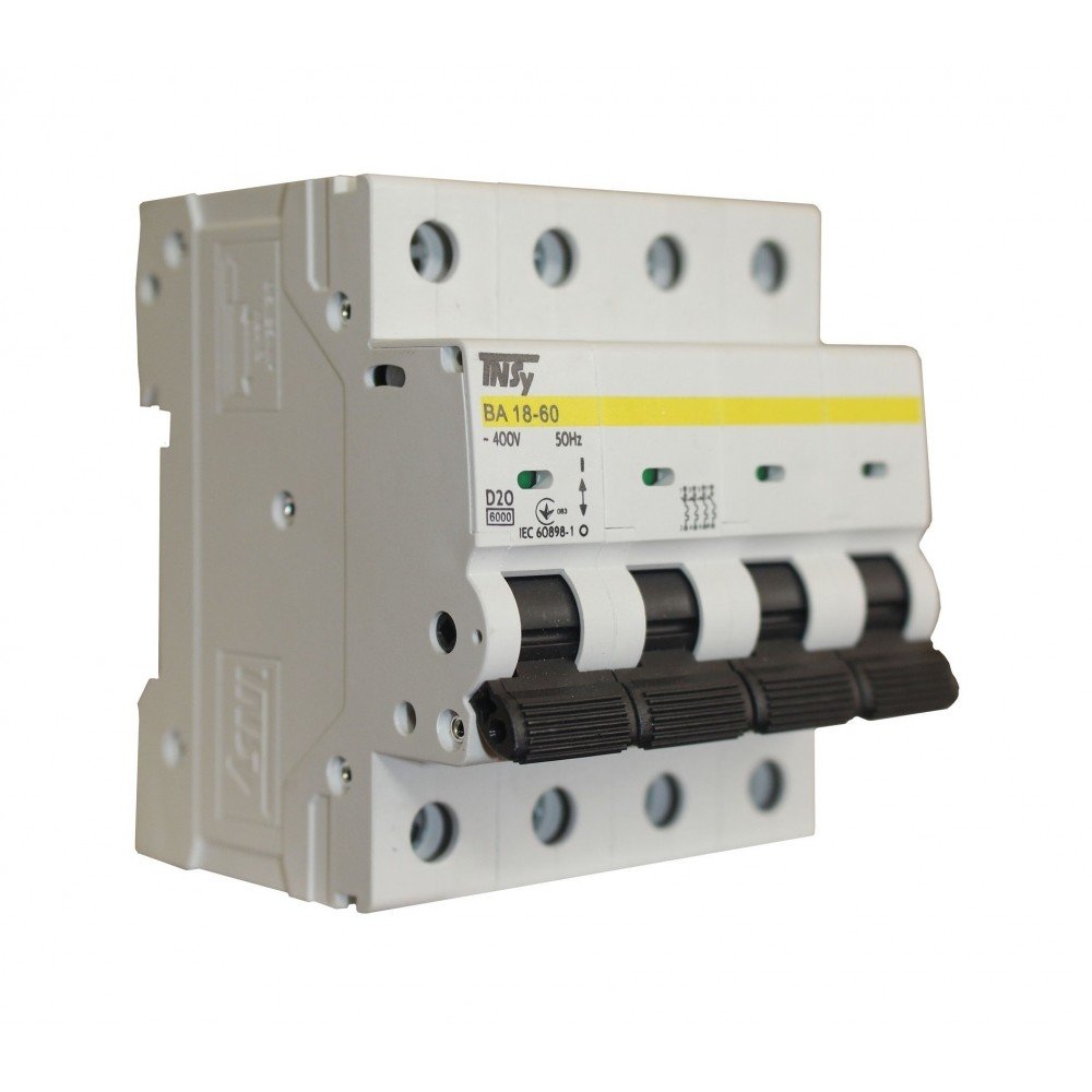 Автоматичний вимикач ВА18-60 4Р 20А 6кА х-ка D TNSy