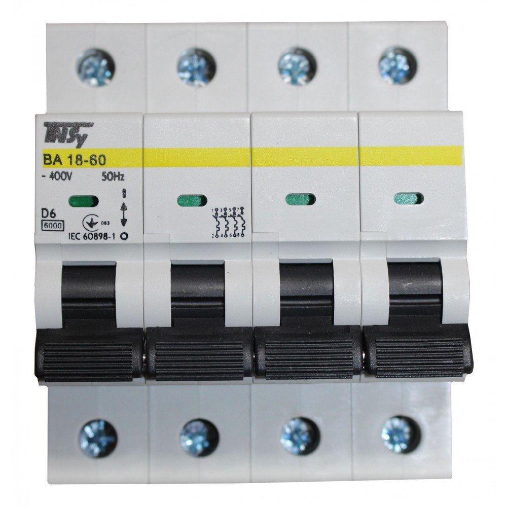 Автоматичний вимикач ВА18-60 4Р 6А 6кА х-ка D TNSy