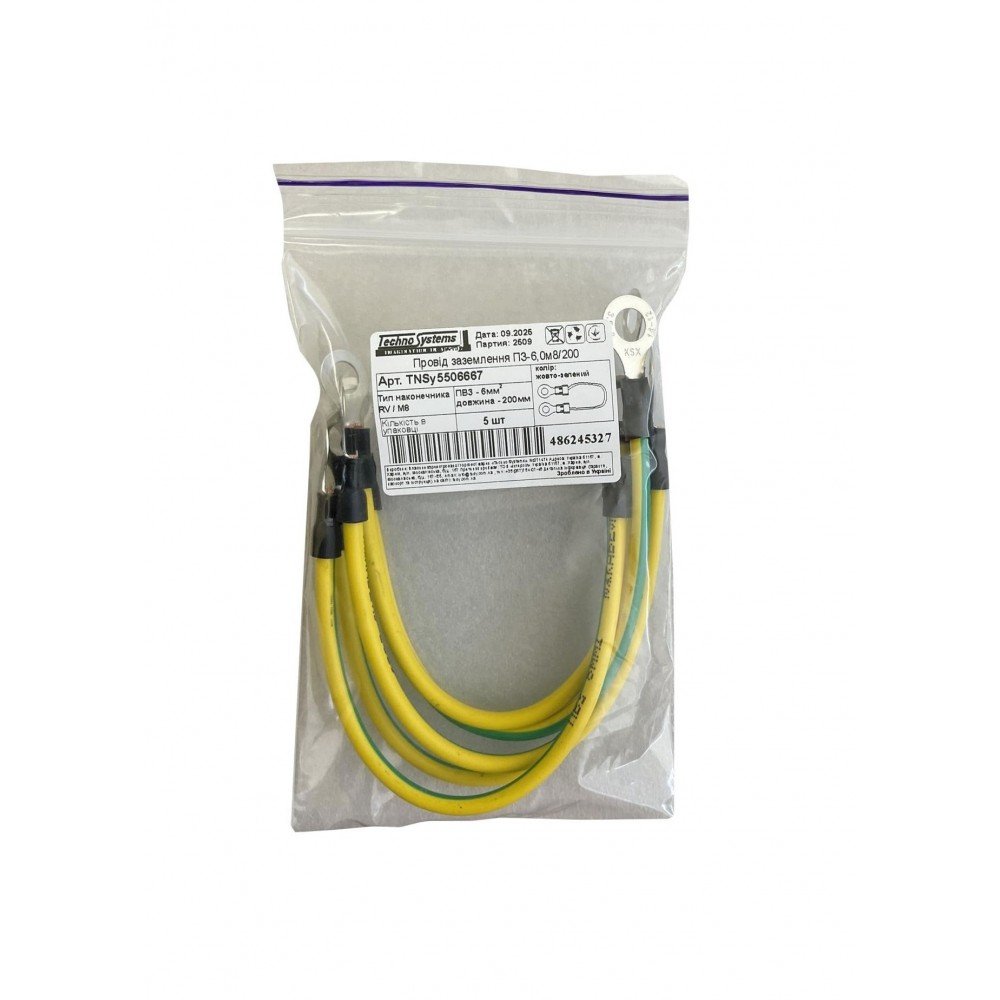 Провід заземлення ПЗ-6,0м8/200 (ПВ3-6мм2 Ж/З, L200мм, М8.) TNSy