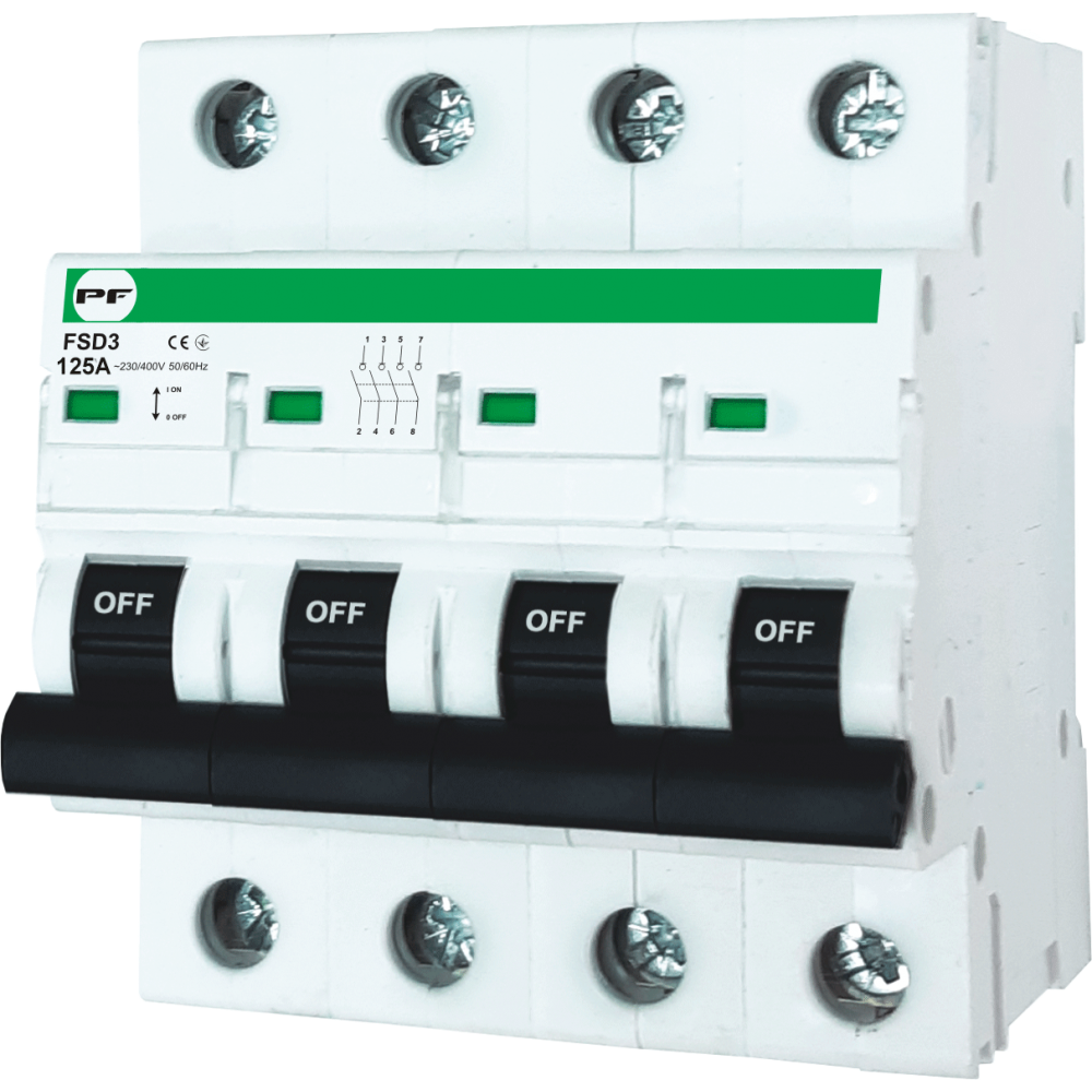 Модульний силовий вимикач FSD3 використовується як силовий рубильник. Призначений для застосування на об'єктах громадського будівництва та об'єктах адміністративно-комерційного призначення.