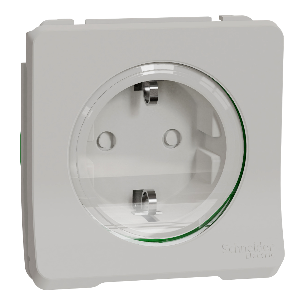 Розетка з заземленням та шторками Mureva Styl MUR39134 має ступінь захисту ІР55. У розетку можно вбудувати світлодіодом, який зробить її видимою у темряві. Завдяки ергономічній конструкції з виробом легко працювати та просто користуватись. Корпус розетки стійкий до пошкоджень, може встановлюватись в приміщенні та поза ним. Прозора кришка дозволяє бачити механізм, щоб відризнити механізм розетки від вимикача.