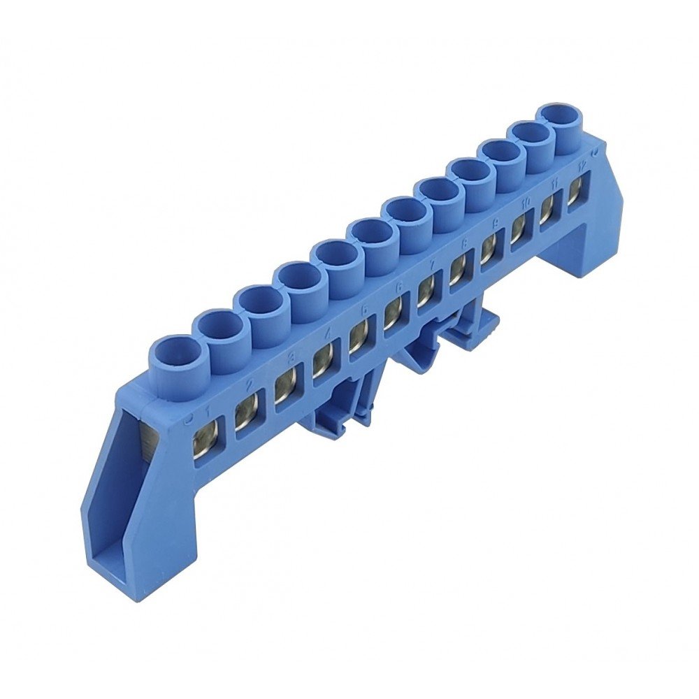 Шина універсальна ізольована «N» на DIN-рейку ШЛУ8х12-12 синій - призначається для електричного та механічного з'єднання нульових, захисних та фазних провідників.