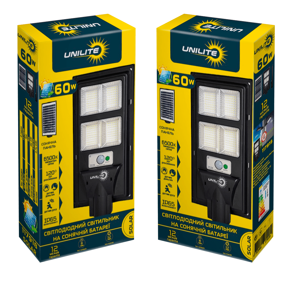 Світлодіодний вуличний світильник на сонячній батареї UNILITE 60W 6500K (117918) і з дистанційним керуванням – Ваш надійний супутник у світі освітлення!