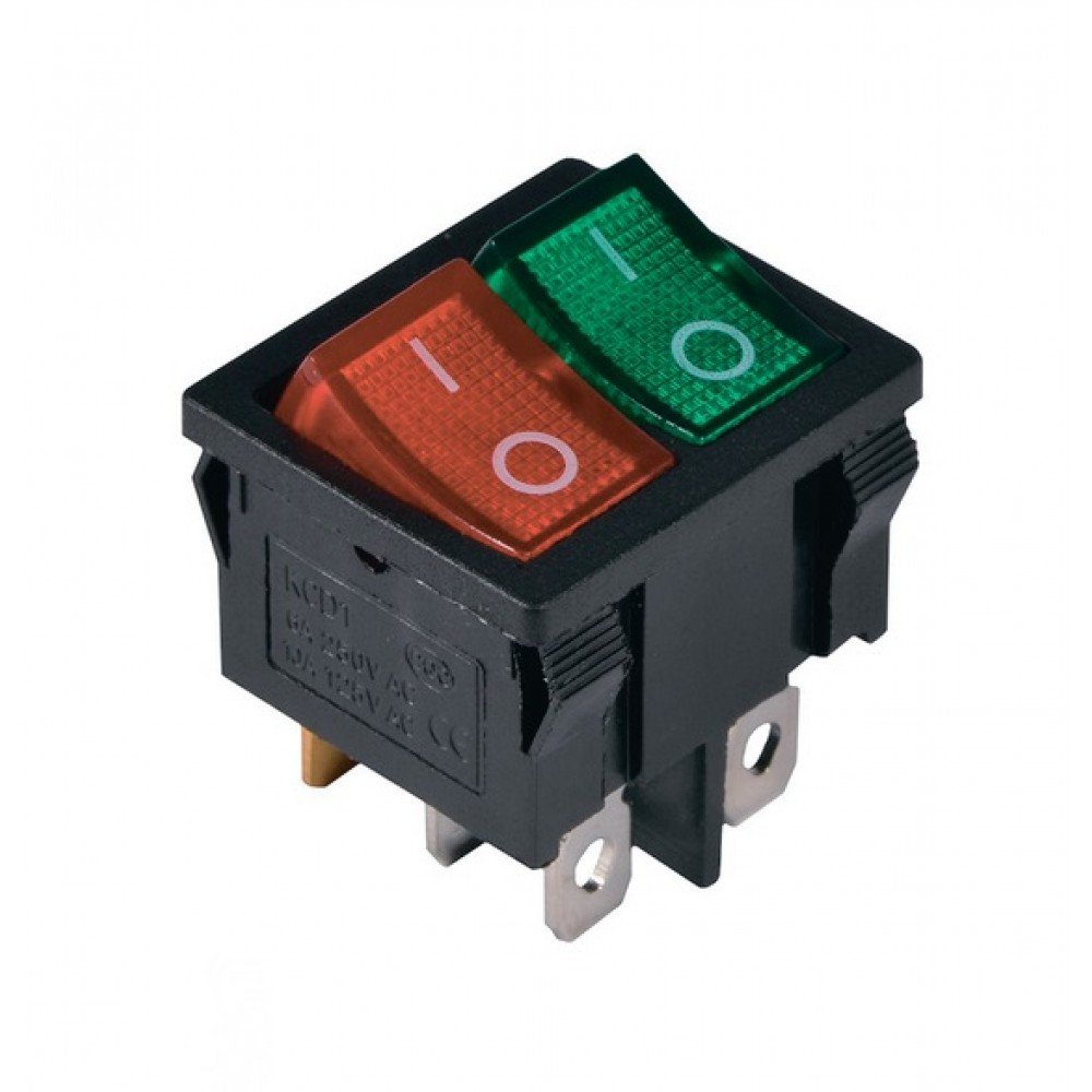 KCD1-6-2101N G+R/B 220V Перемикач 2 клав. зелений+червоний з підсвічуванням TNSy