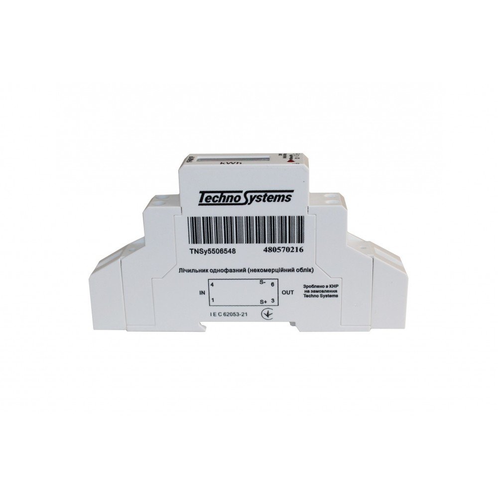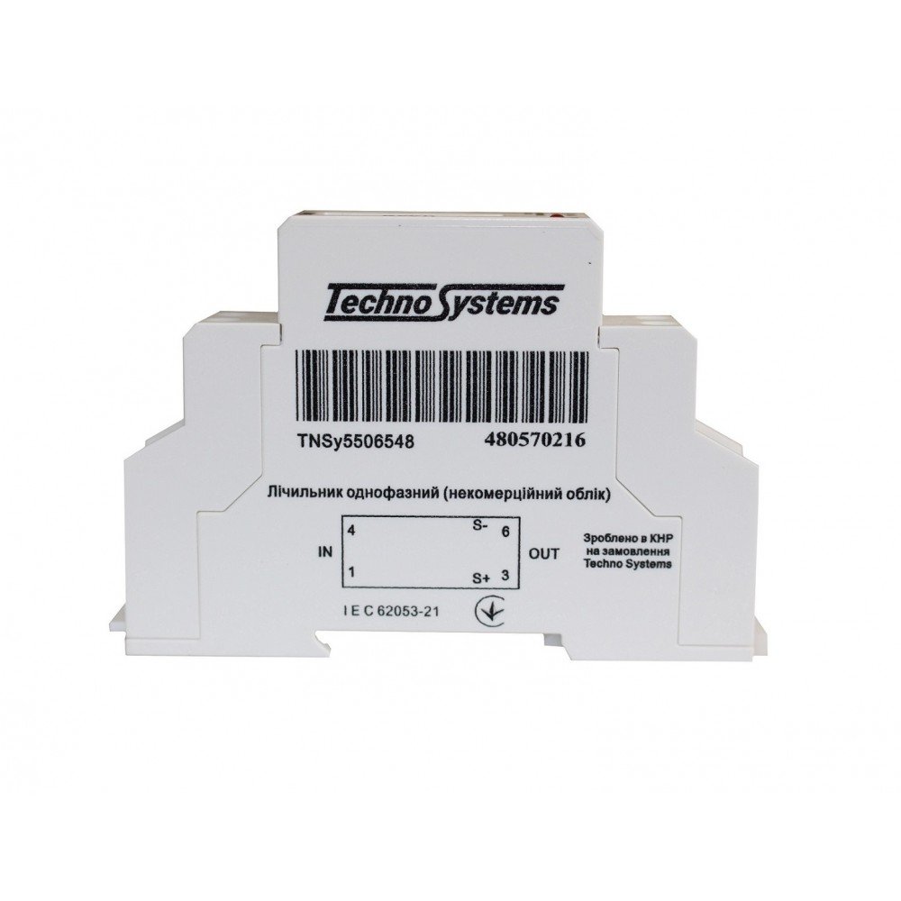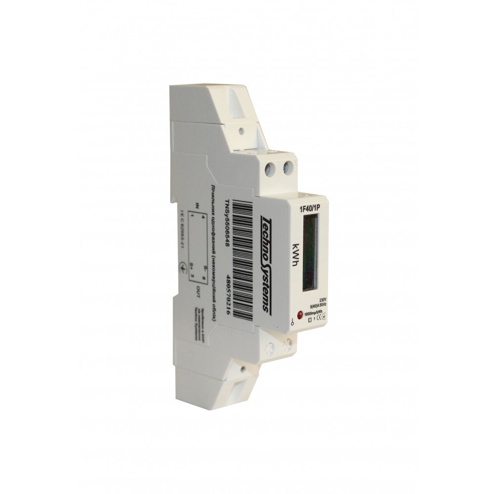 Лічильник однофазний 1F40/1P 5(40)А 230В електронний клас 1.0 товарного знаку Techno Systems призначений для обліку електроенергії в однофазних мережах
