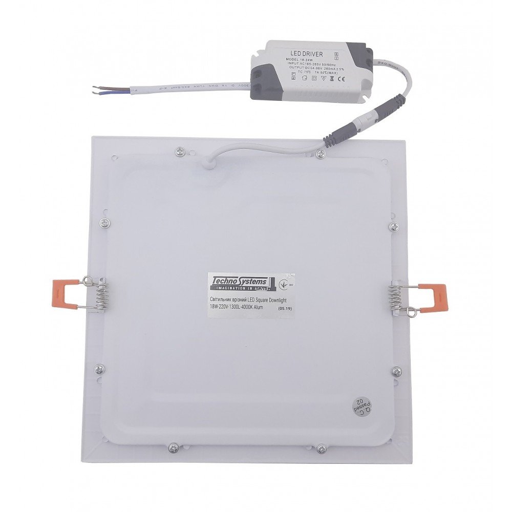 Светильник врезной LED Square Downlight 18W-220V-1300L-4000K Alum TNSy - предназначен для общего и местного освещения, административных, общественных и бытовых помещений. Монтируется в подвесные и гипсокартонные стены.