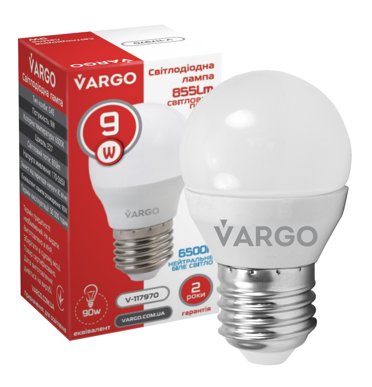 LED лампа VARGO G45 9W E27 6500K 855lm (117970)